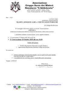 Si avvisano le Donne Devote, partecipanti alla Processione “Addolorata”, che: • I ceri votivi saranno disponibili già da oggi 05//03/2024 presso la sede associativa…